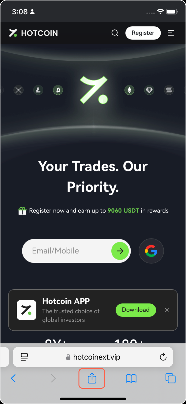 To help you quickly access the Hotcoin official website and related pages, you can add the Hotcoin webpage directly to your device’s desktop or home screen. Please follow the steps below according to your device type.