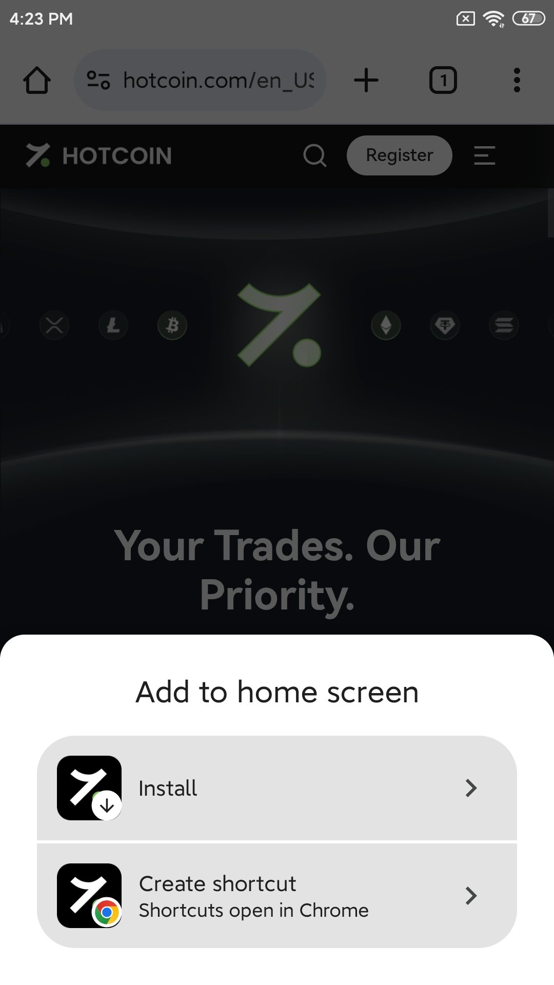 5. The Hotcoin webpage shortcut icon will appear on your phone’s home screen for quick access.