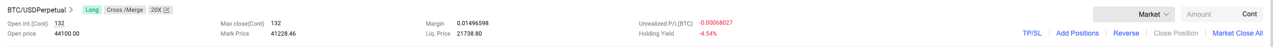 Reverse position opening: Reverse position opening will be closed at the market price, and then a reverse position of the same amount will be opened. Please ensure that your balance is sufficient. Due to market fluctuations, opening a reverse position may not be successful.