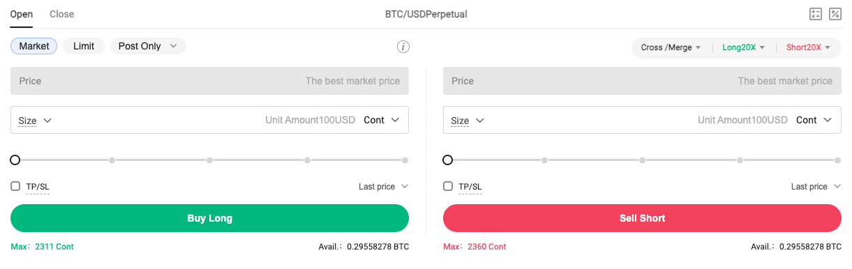 Step 3: Select the direction of opening a position: "Open Long" or "Open Short"