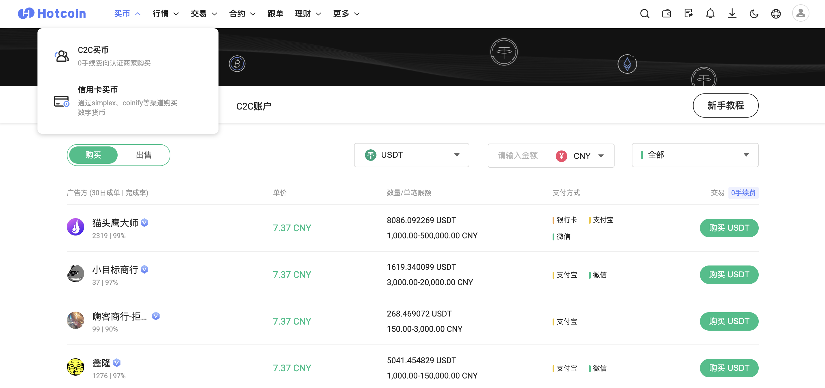 或者通过 C2C 买币 / 信用卡买币来使用法币购买加密货币。
