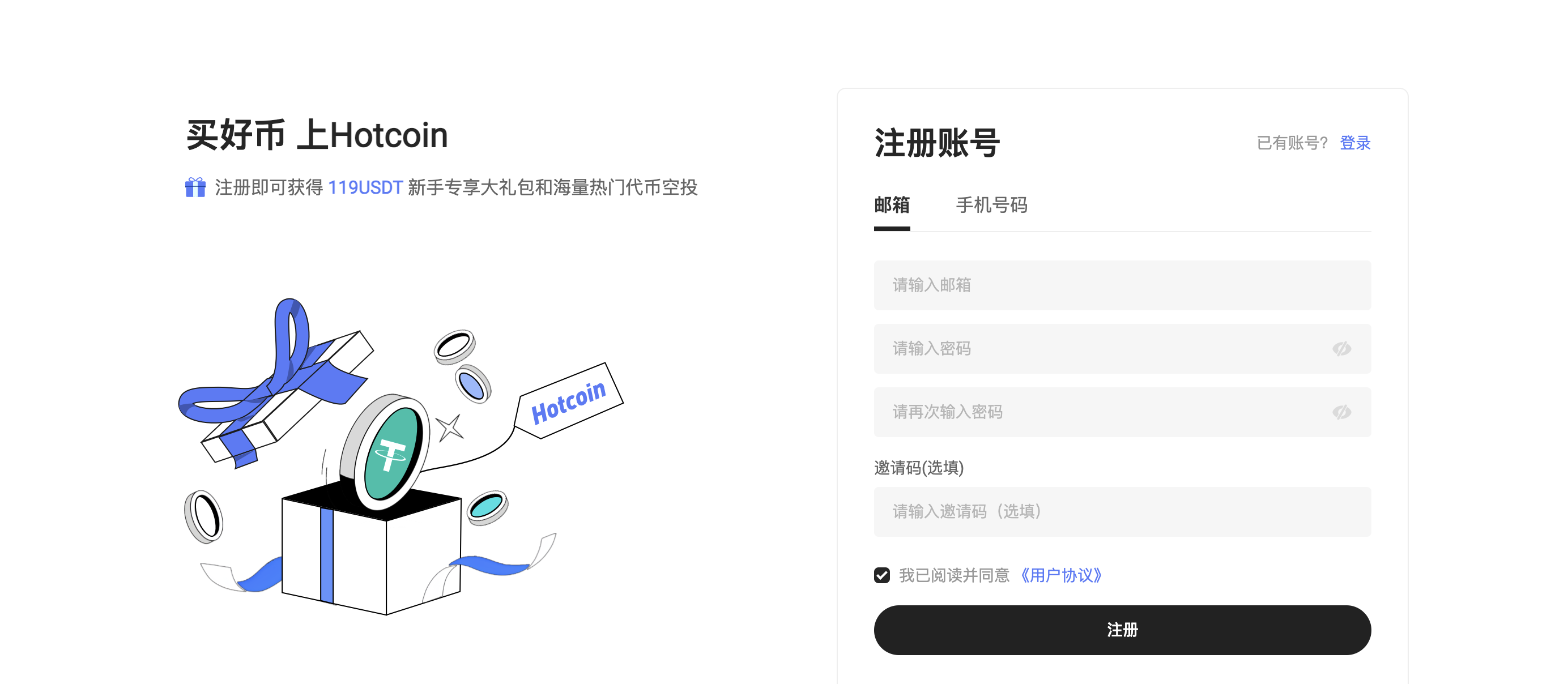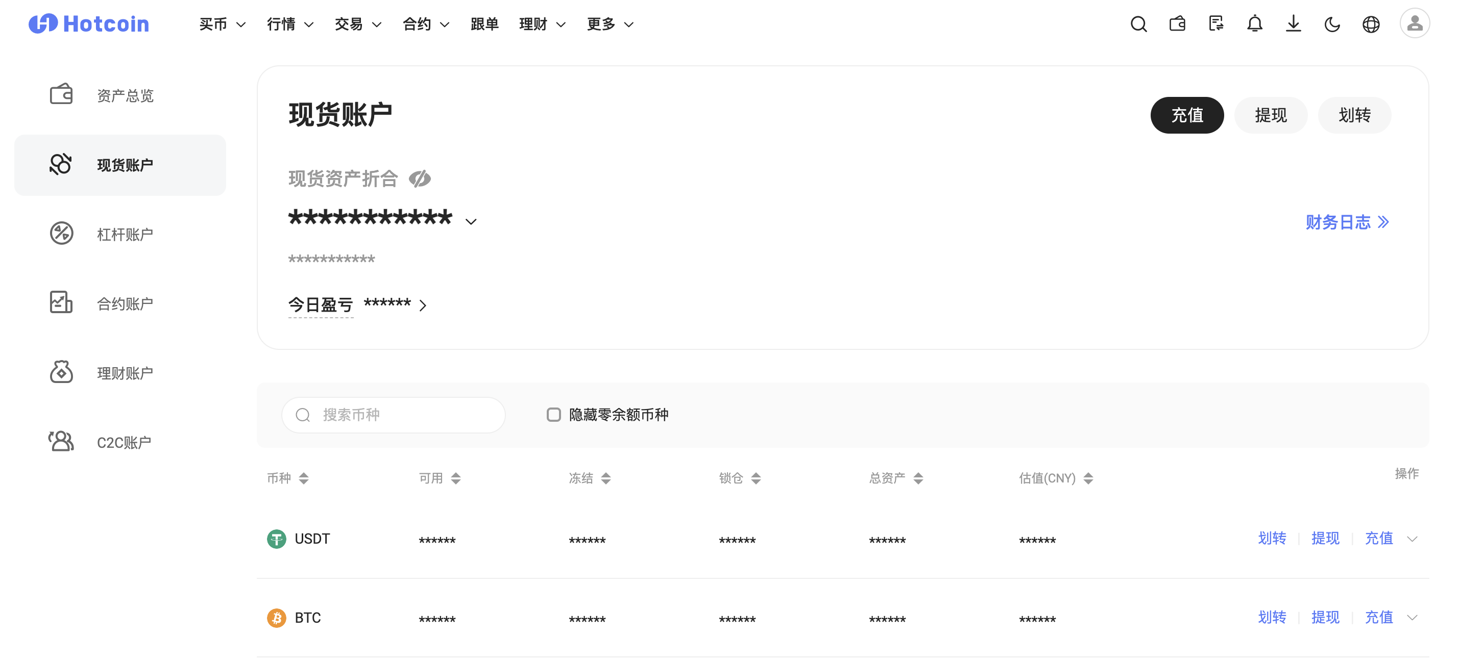 向您的 Hotcoin 现货账户存入自有资产或购买 USDT、USDC、BTC 等货币。
