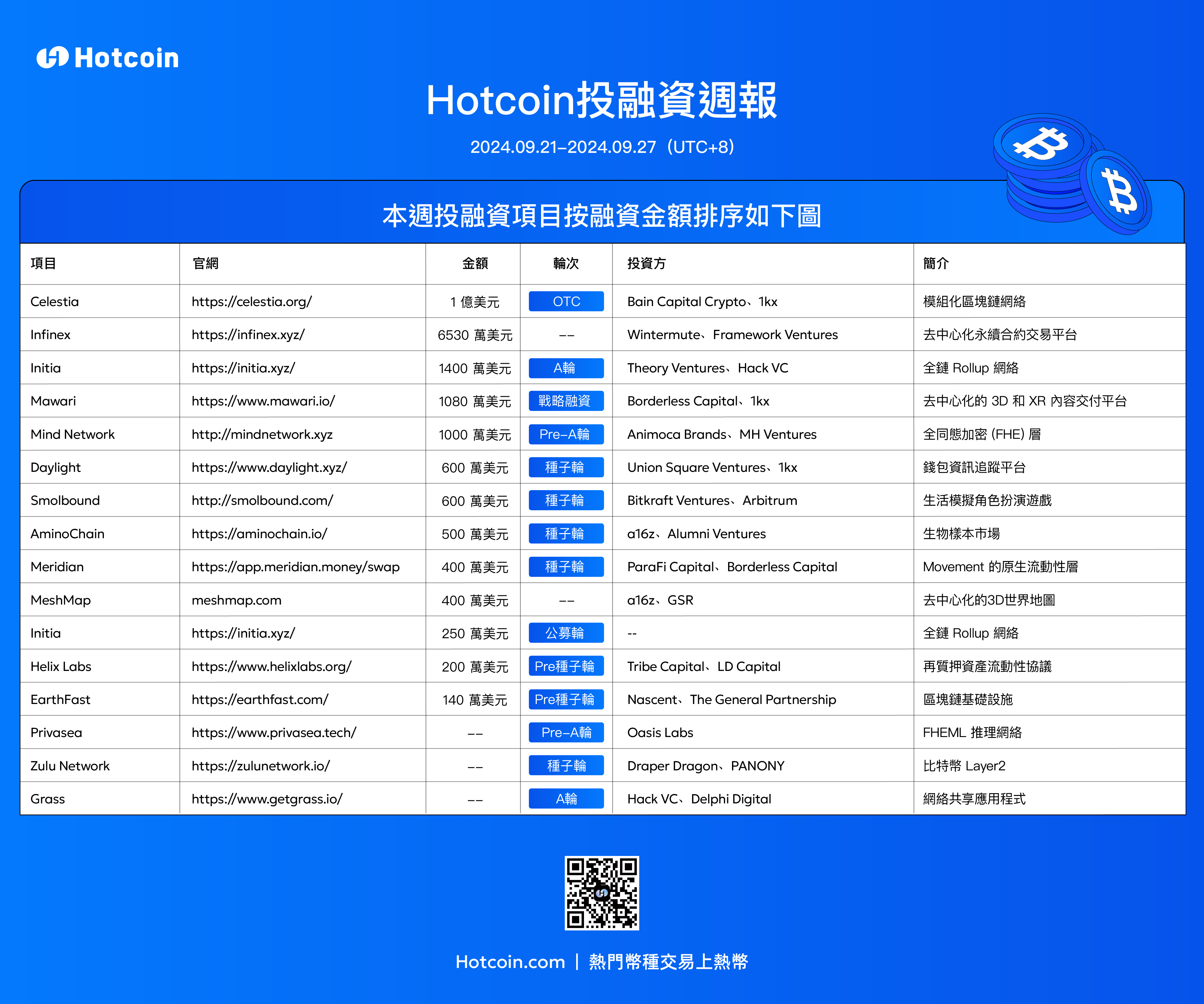 全同態加密 (FHE) 層Mind Network完成了一輪1000 萬美元的Pre-A輪融資,投資方為Animoca Brands、MH Ventures等。