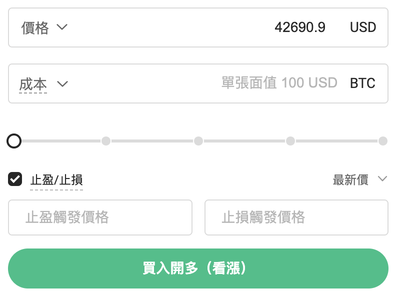 系統預設為全倉/合倉,可依需求點選【逐倉】【分倉】重新選擇交易模式。