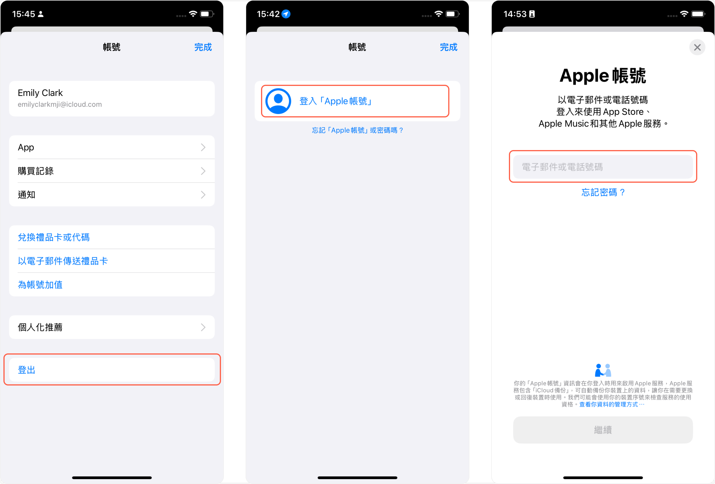 2、拖到最下方,點擊退出登錄,輸入非大陸地區的Apple ID和密碼重新登錄