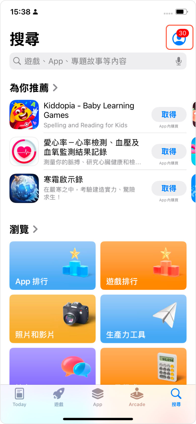 1、打開App Store應用,點擊Apple Store右上角頭像