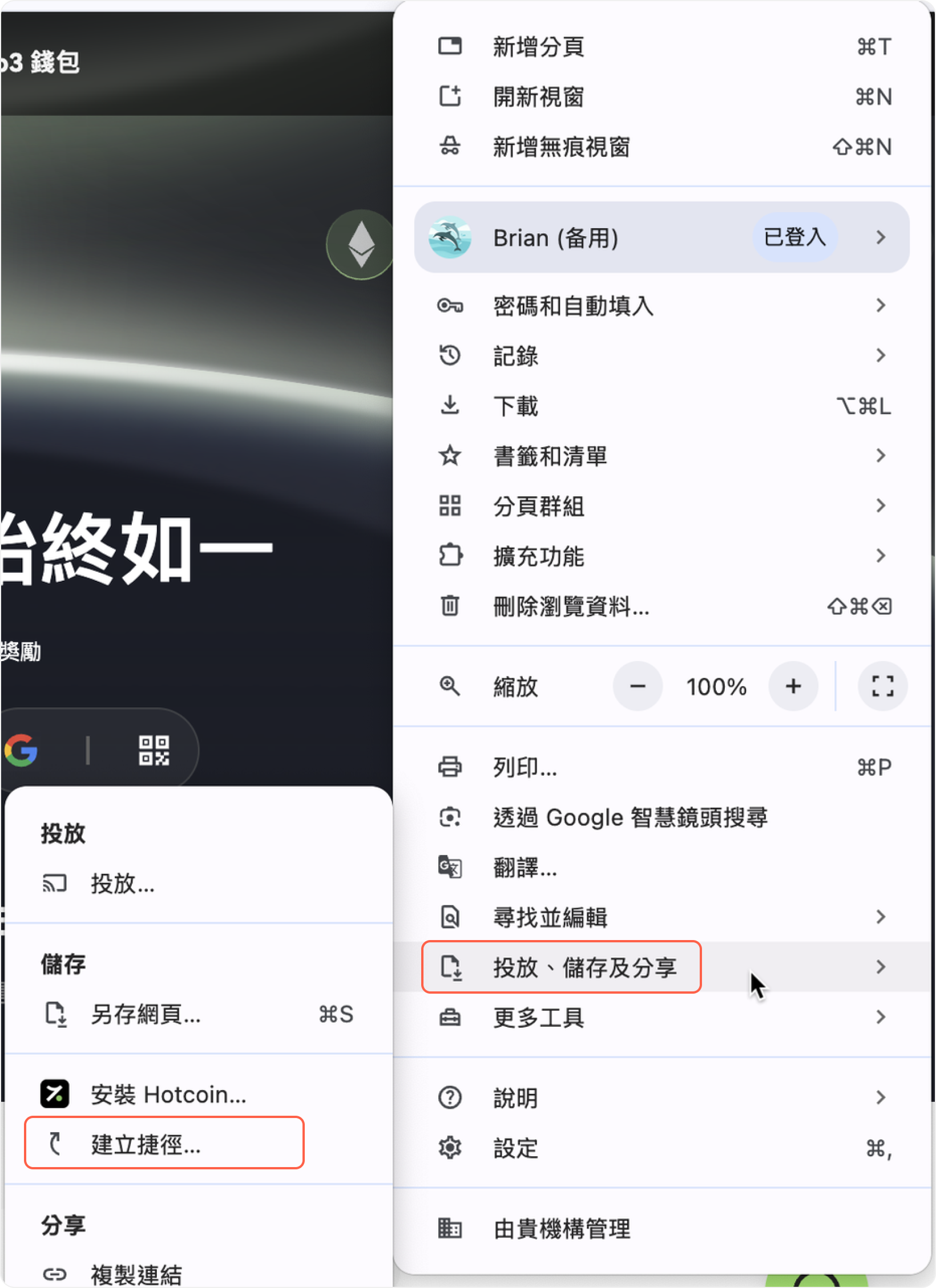 ● 不同品牌/版本的瀏覽器,選單項目名稱可能略有差異:
