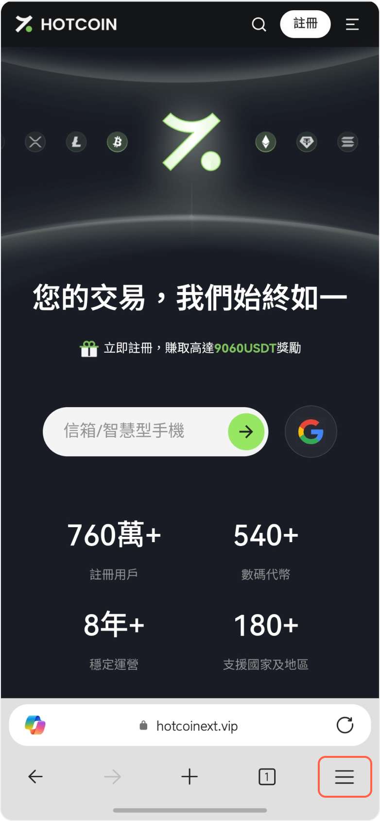 若您在手機端遇到了 APP 下載問題,也可透過此方式,使用 Hotcoin 的功能與服務。