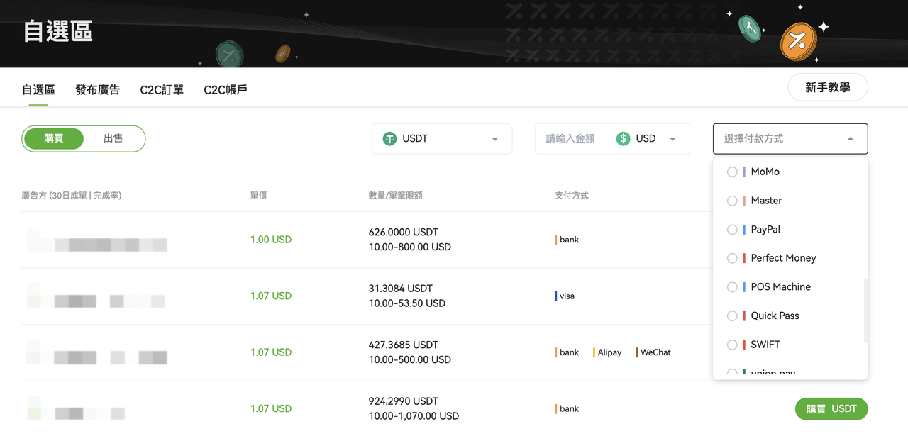 在 C2C 交易介面中: