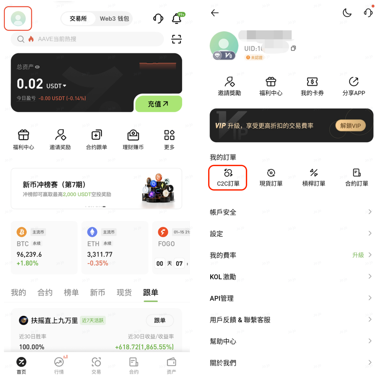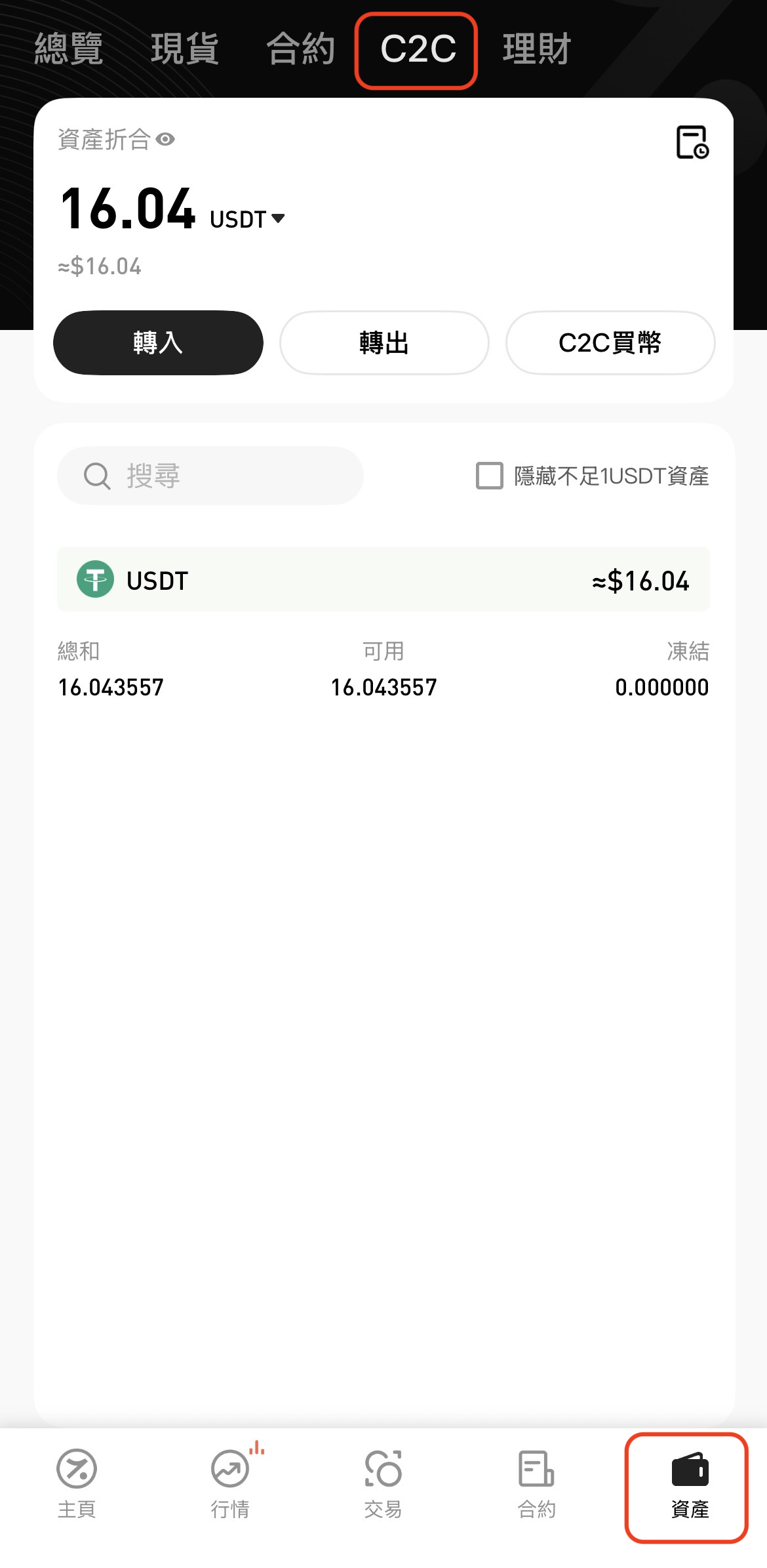 App 端: 點擊首頁下方 「資產」 → 「C2C」 查看。