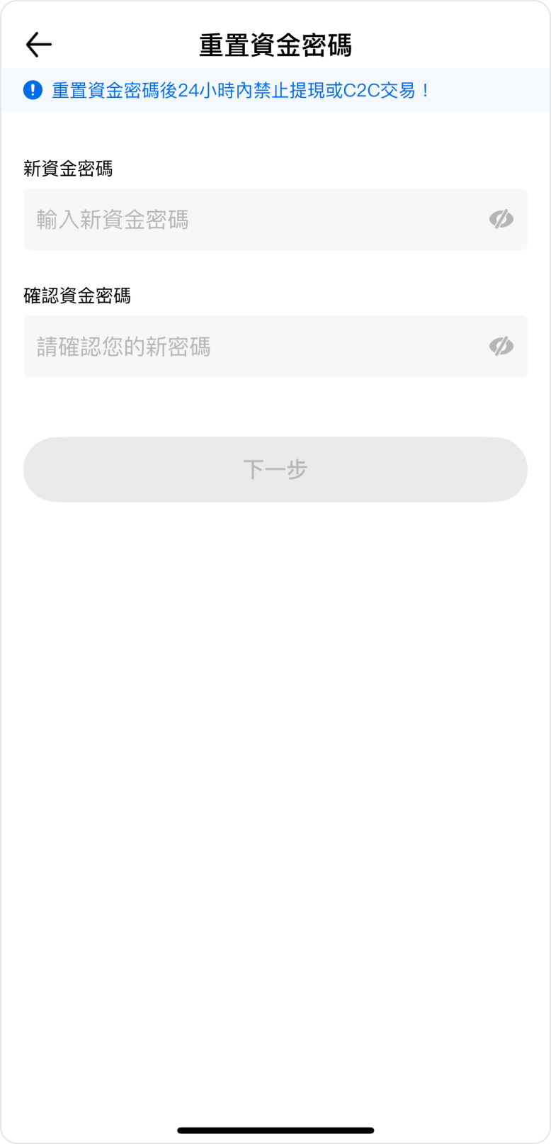 修改完成後點擊【下一步】,即完成資金密碼修改。