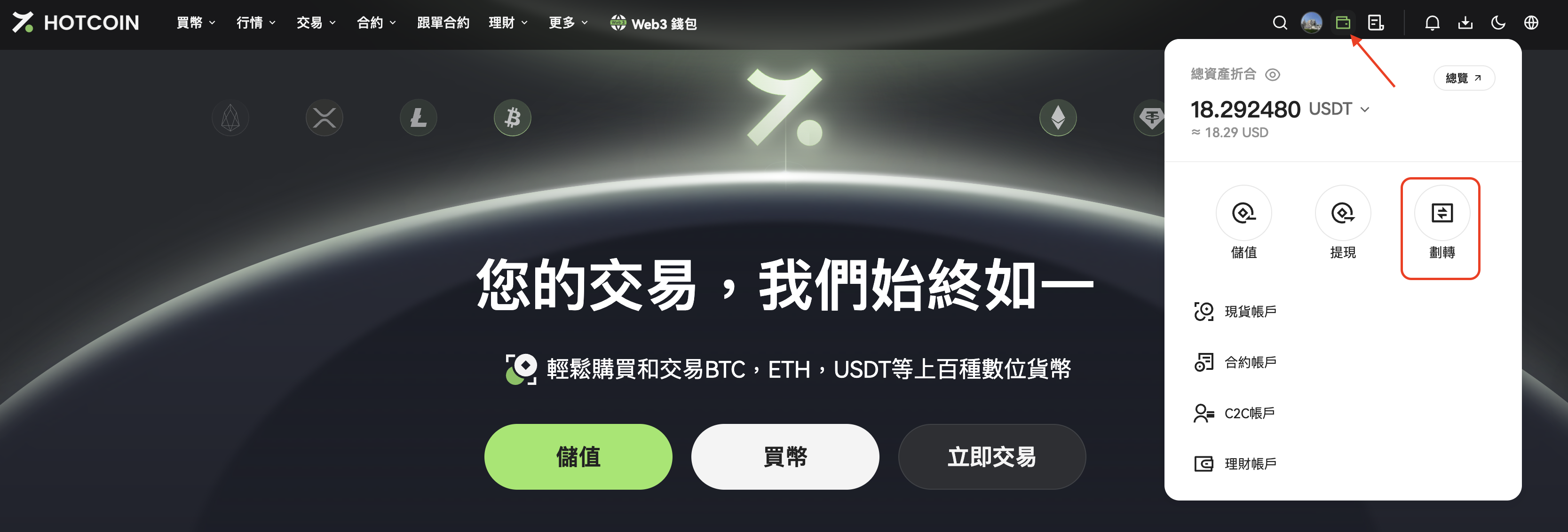 資金劃轉是指用戶在 Hotcoin 平台不同帳戶之間轉移資產的操作。